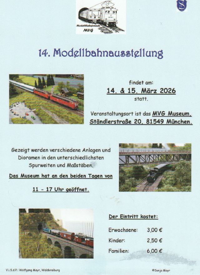 14. Modellbahnausstellung am 14.03. und 15.03.2026 im MVG-Museum, München